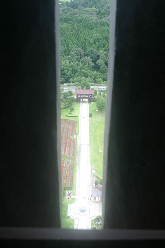 | Ibaraki - Ushiku : Ushiku Daibutsu - looking down from the statue's chest's peek hole