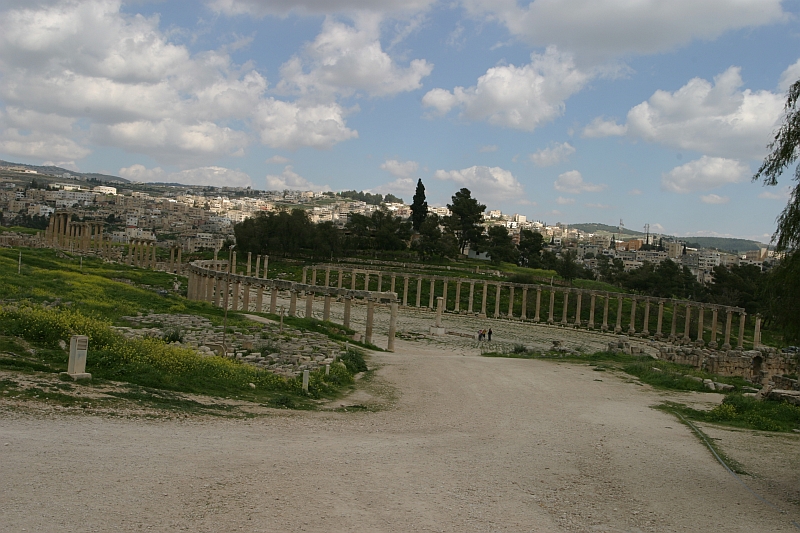 | Jordan : Jerash - Oval Plaza, looking towards South Theatre and Temple of Zeus