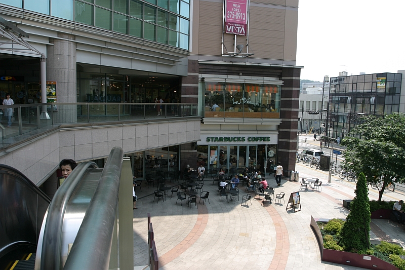 The coffee shop is actually the Starbucks near the Keio Line Seisekisakuragaoka Station.