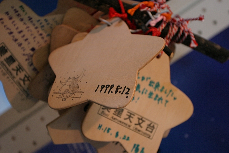 | The "wishing tree" inside Bisei Astronomical Observatory. The star shape ema can be bought in the observatory.