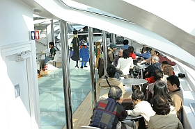 | Looking at Rainbow Bridge from one of the observation window aboard Himiko