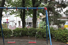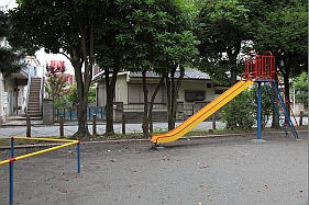 | Kamenoko Children Park : the hill at the left and the toilet at the right