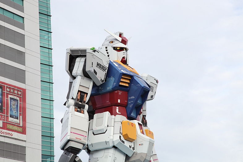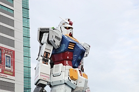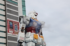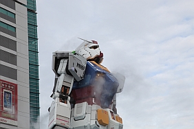 | Every hour, a show of the 1:1 Gundam moving its head, releasing steam, and lighting its eyes is performed