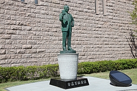 | Andou Momofuku statue in the front lawn of the museum. He is the inventor of instant ramen and cup noodle, and the founder of Nissin Foods.