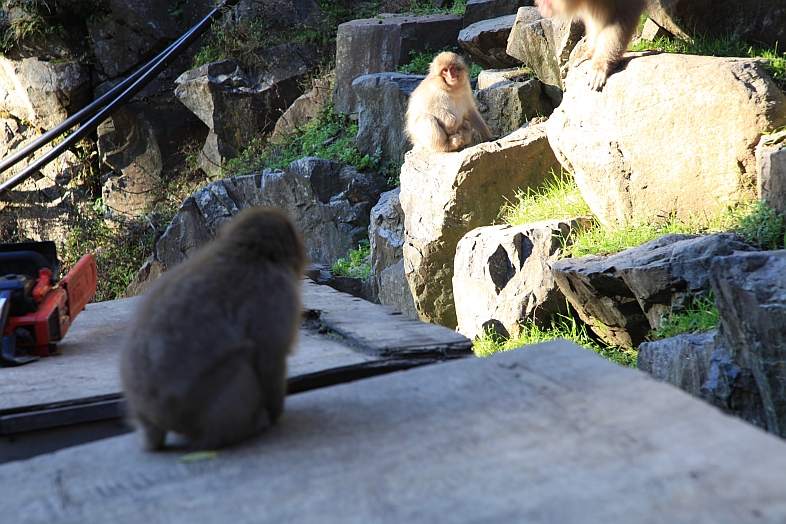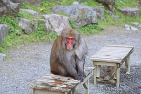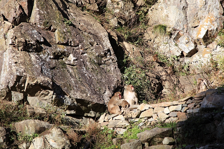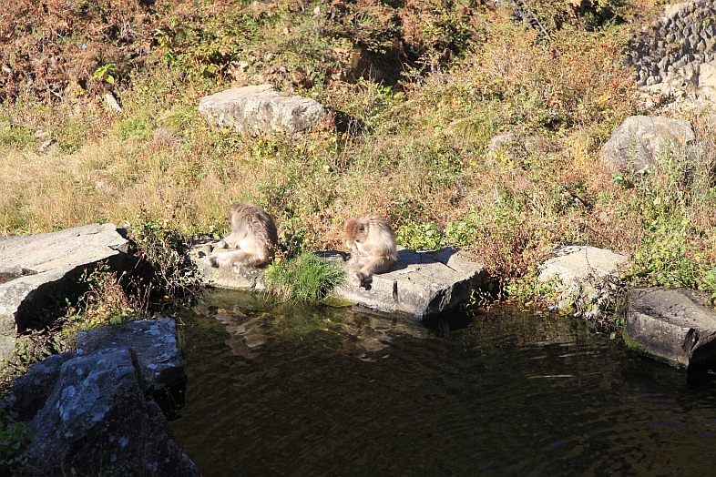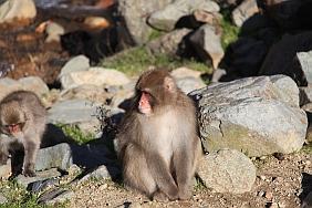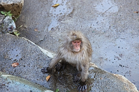 | Monkey resting after a good hot spring dip | Monkeys sitting at the hill side near the hot spring | Monkeys resting after a good hot spring dip |