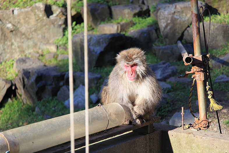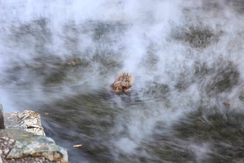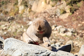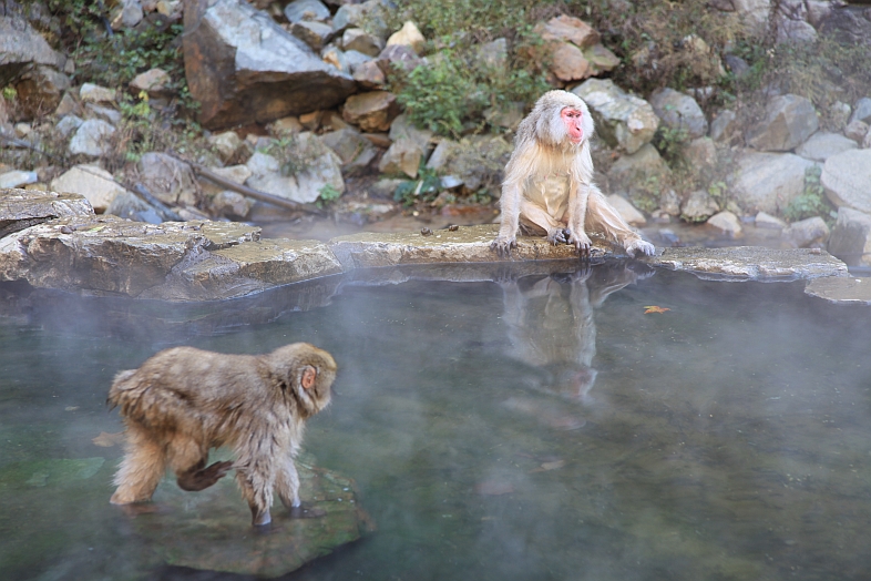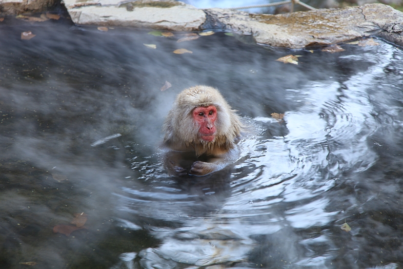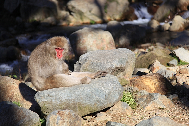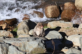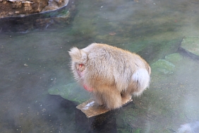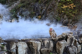 | Monkey enjoying the hot spring | Monkey sitting beside the river near the hot spring | Monkey sitting beside the river near the hot spring |