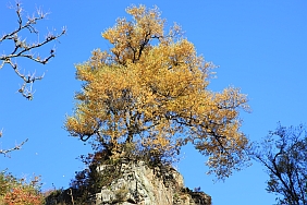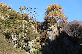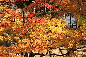 | Yellow leaves tree located at the hill top near the park | Monkey sitting near the hot spring waiting to be fed | Red/yellow leaves trees located near the bus stop near the entrance of the park |