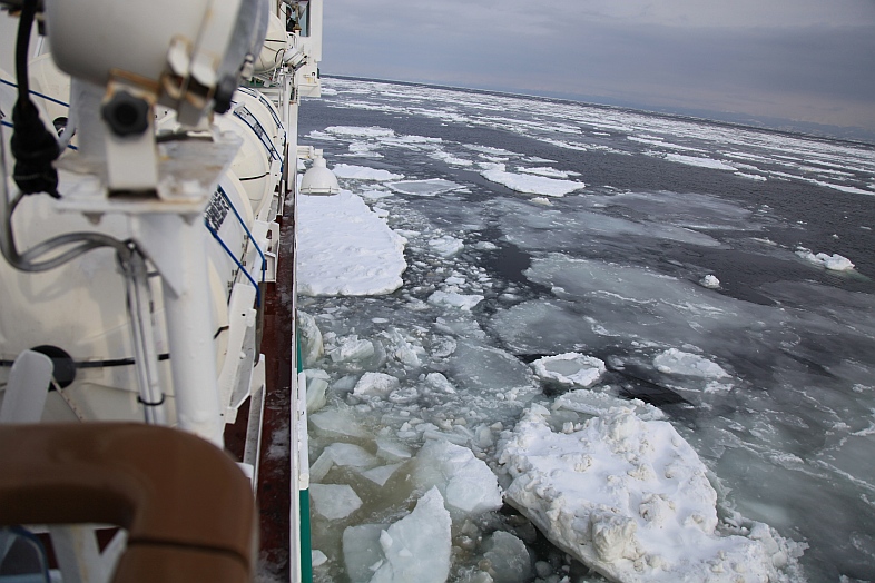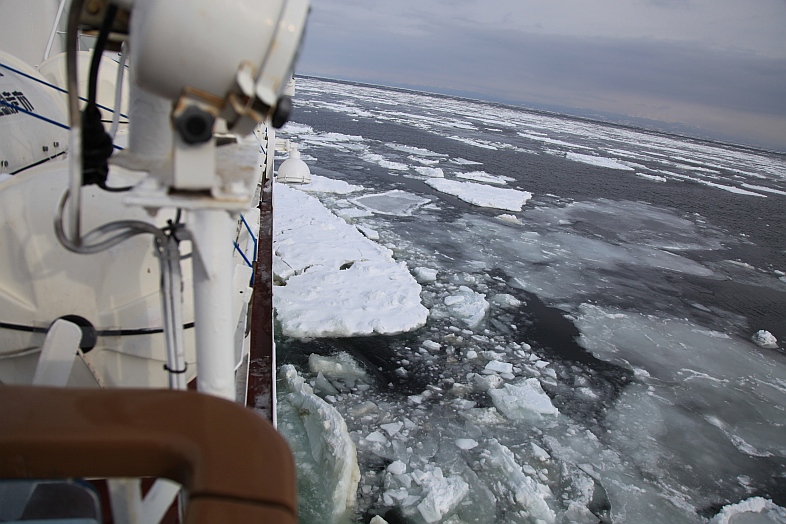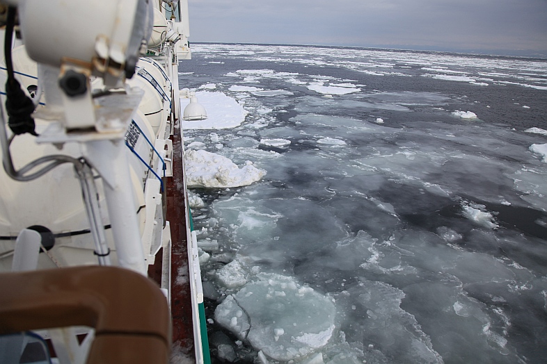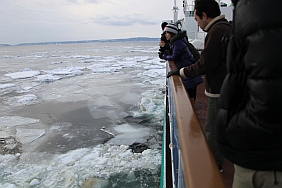 Abashiri's winter drift ice cruise is quite famous. Every year, ice would be drifted in the surface of the sea from Russia to the north of Hokkaido near Abashiri. Unfortunately, on the day of the cruise, there was not much drift ice near Abashiri. The nearest train station is Abashiri station of the JR Senmou Main Line. | ||