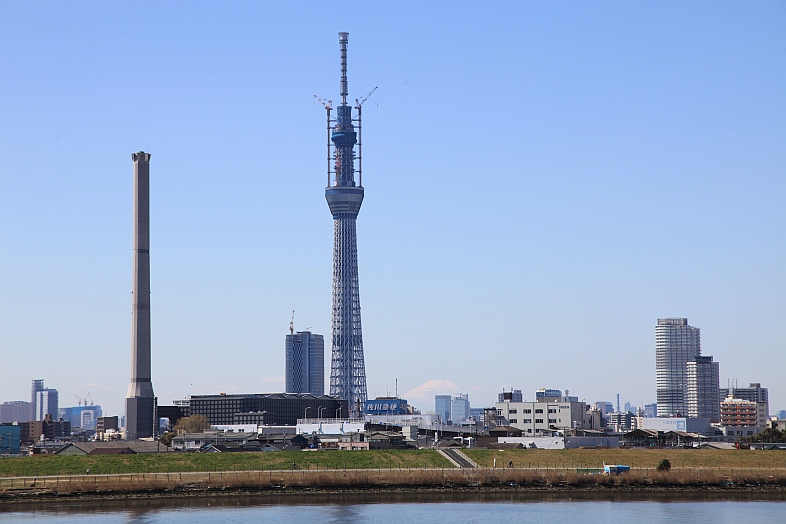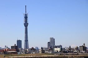 On a fine weather day, several places in Tokyo can see both the Tokyo Sky Tree and Fuji-san (Mount Fuji).