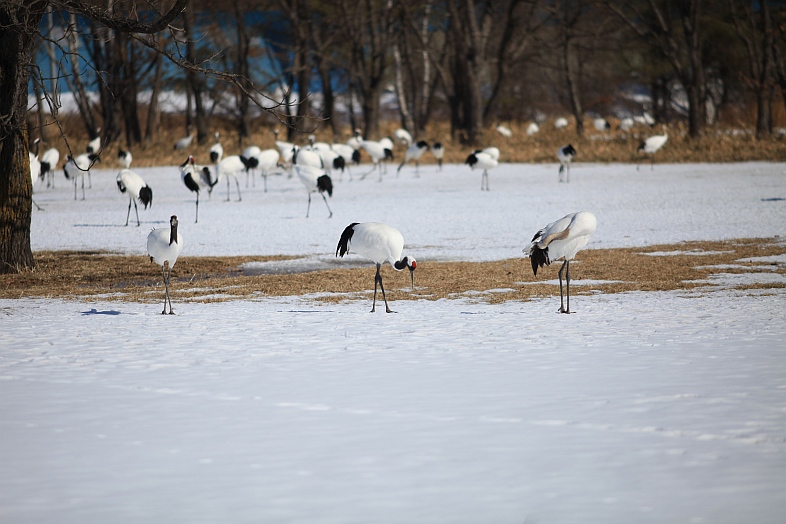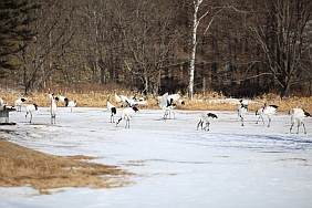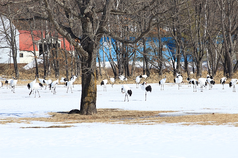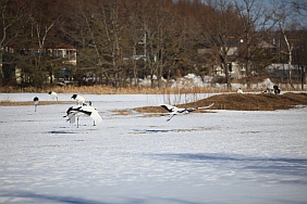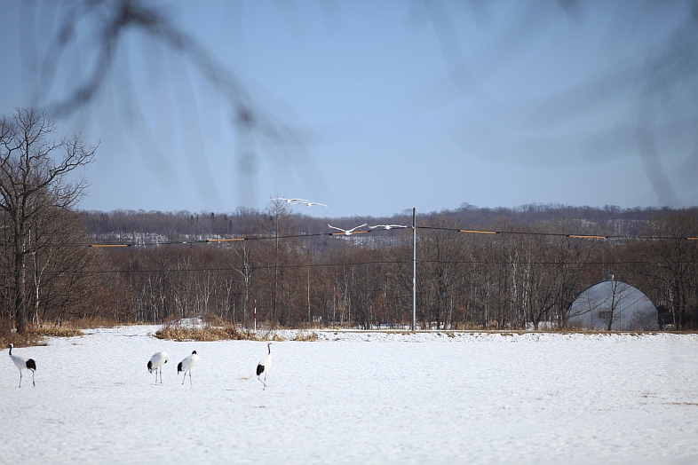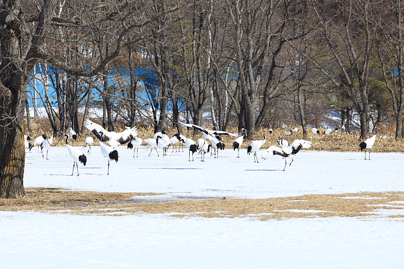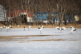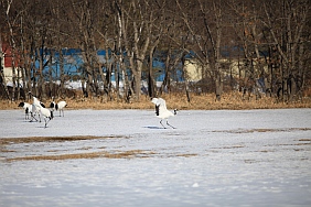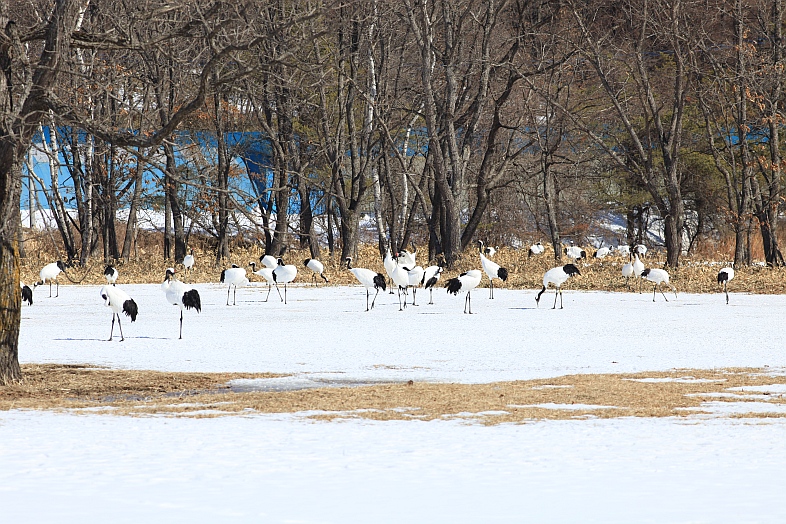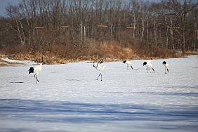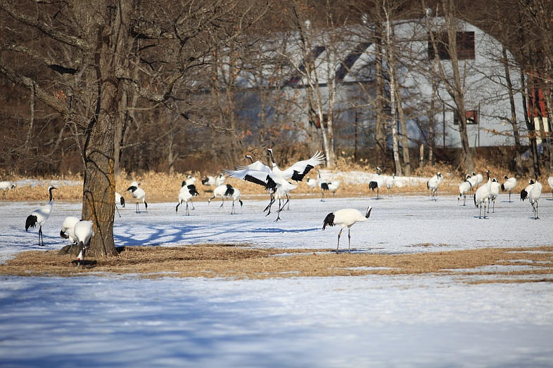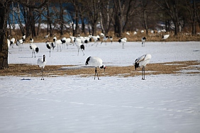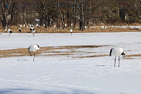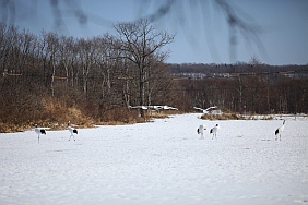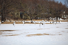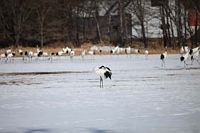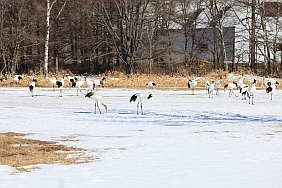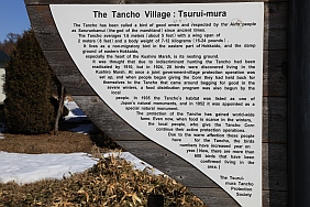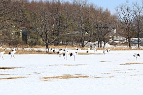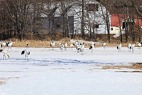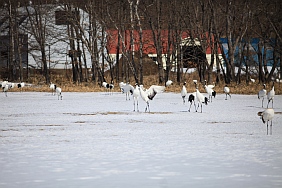 Tsurumidai (Crane-seeing-terrace) is a winter feeding ground for wild Tanchou (Japanese Crane, as known as Red-Crowned Crane) found by Ms Watabe Tome in Tsurui Village, Kushiro. At first, Tome-san voluntary fed then near extinct Tanchou in her own land 40+ years ago. In recognition of her effort in protecting the near extinct wild life, local government grant her the use of a nearby vacant ground previously own by a primary school, and appointed her as the official Tanchou feeder. Currently she is over 80 years old and still patrols Tsurumidai daily. The nearest train station is Kushiro station of JR Senmou Main Line. | ||