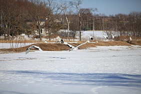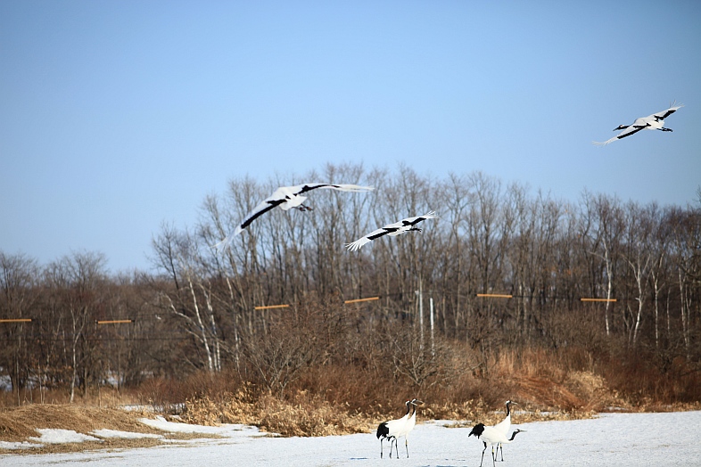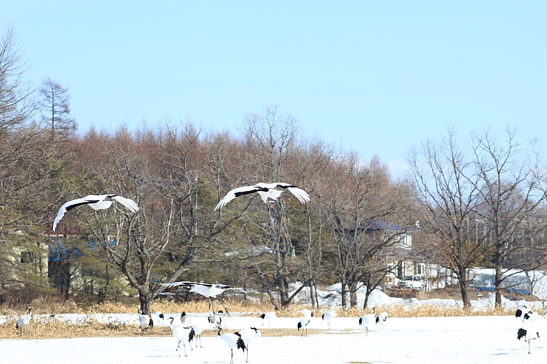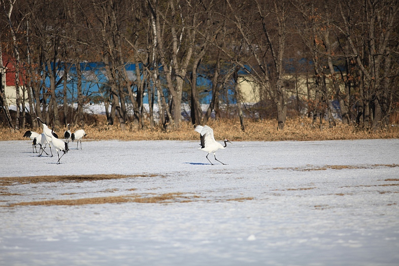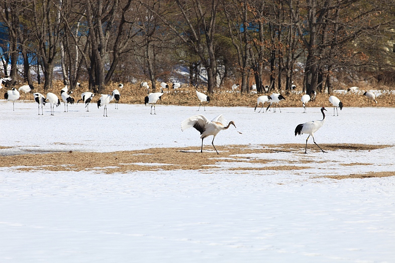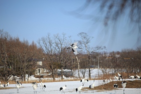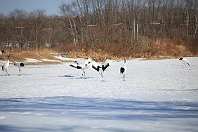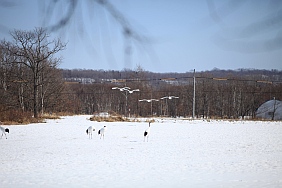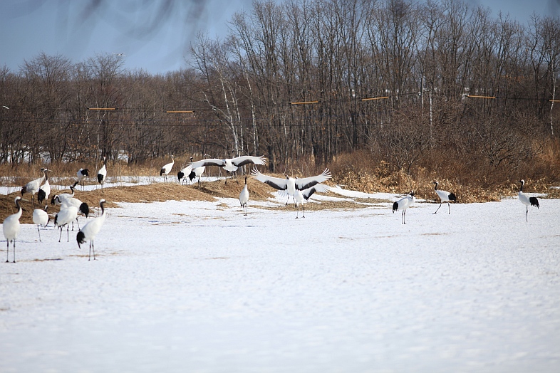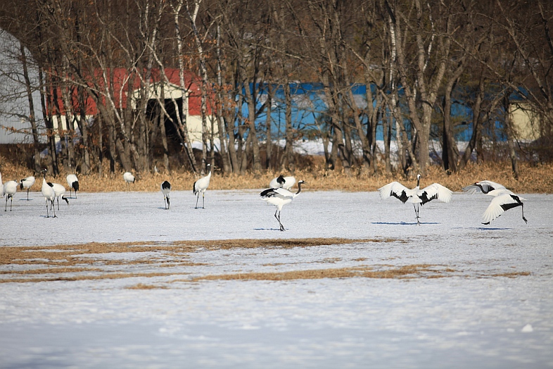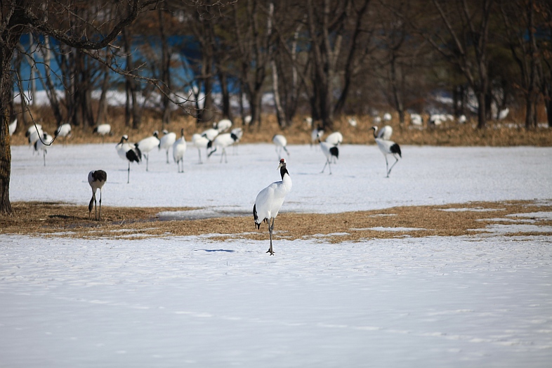 Tsurumidai (Crane-seeing-terrace) is a winter feeding ground for wild Tanchou (Japanese Crane, as known as Red-Crowned Crane) found by Ms Watabe Tome in Tsurui Village, Kushiro. At first, Tome-san voluntary fed then near extinct Tanchou in her own land 40+ years ago. In recognition of her effort in protecting the near extinct wild life, local government grant her the use of a nearby vacant ground previously own by a primary school, and appointed her as the official Tanchou feeder. Currently she is over 80 years old and still patrols Tsurumidai daily. The nearest train station is Kushiro station of JR Senmou Main Line. | ||