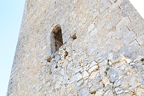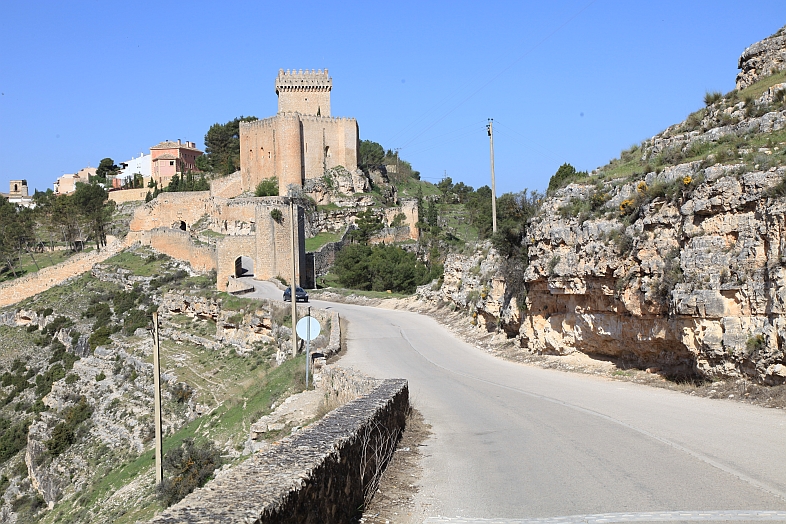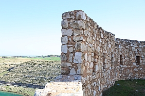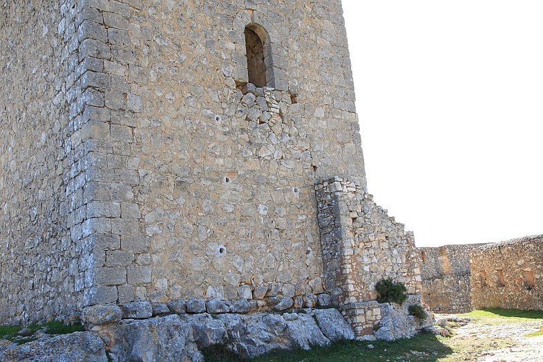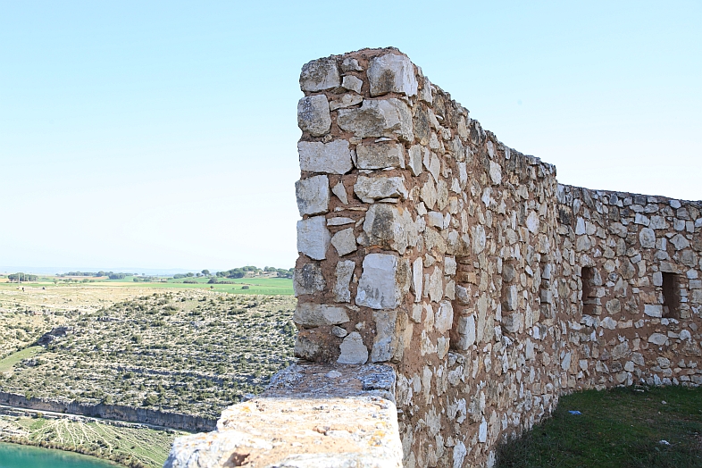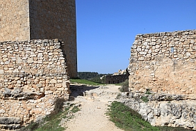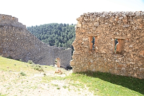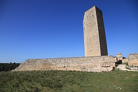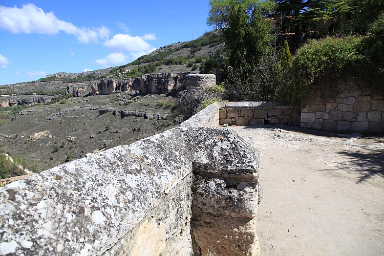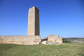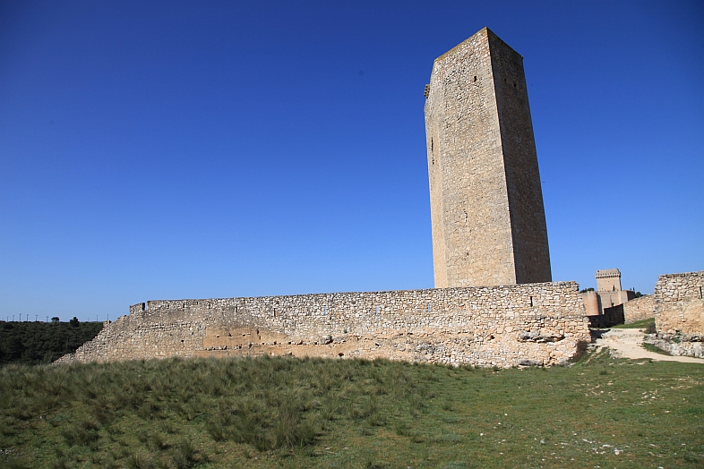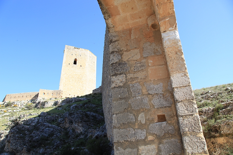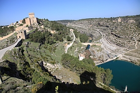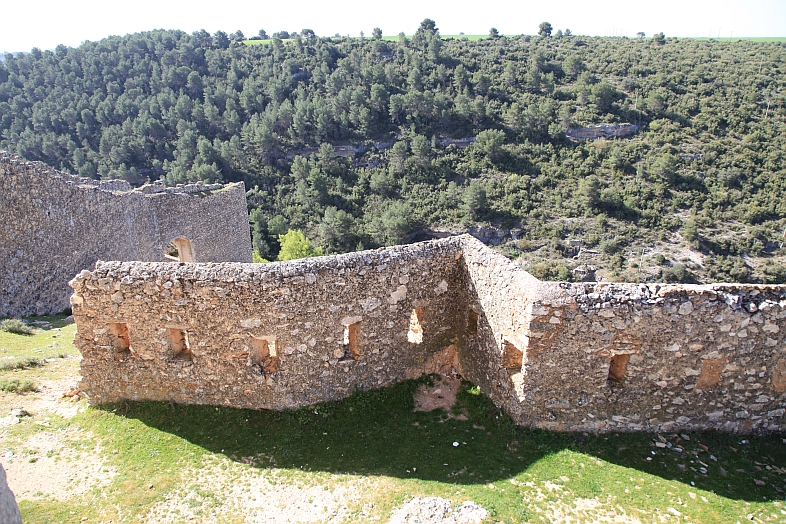 | From the stone wall surrounding Del Campo Tower looking back at the Castle of Alarcon