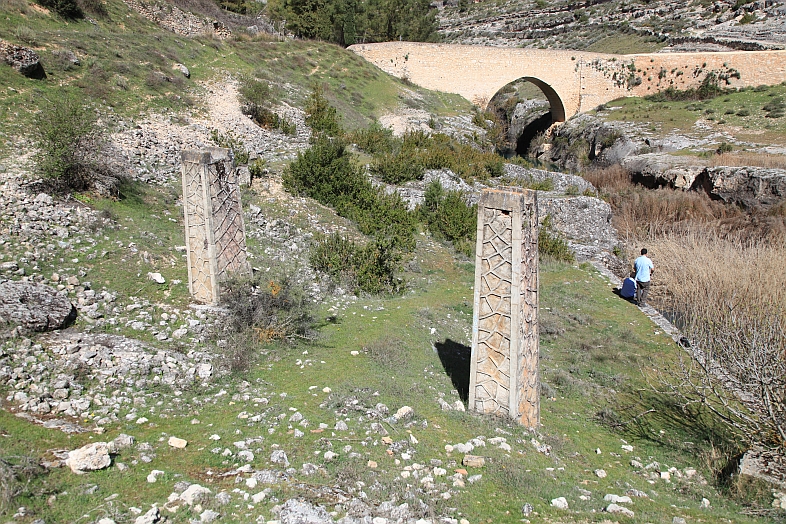 | Looking at the Parador from the middle of the bridge