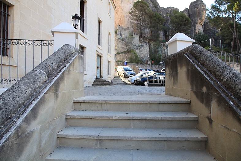 | Looking at the Parador at where Kanata nearly falling down the stone rail