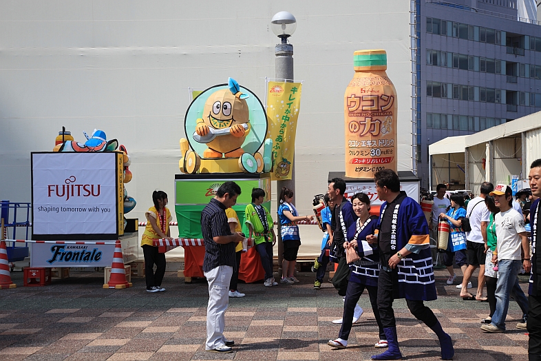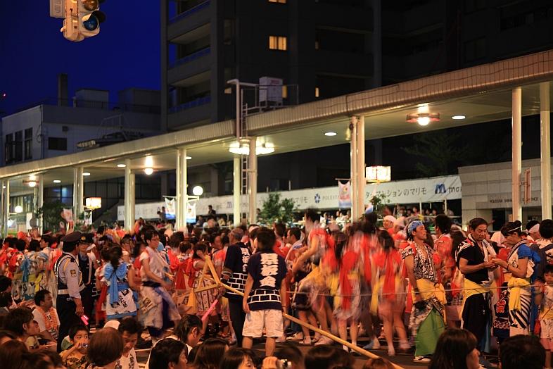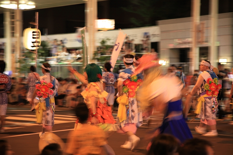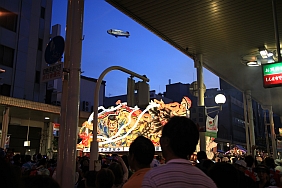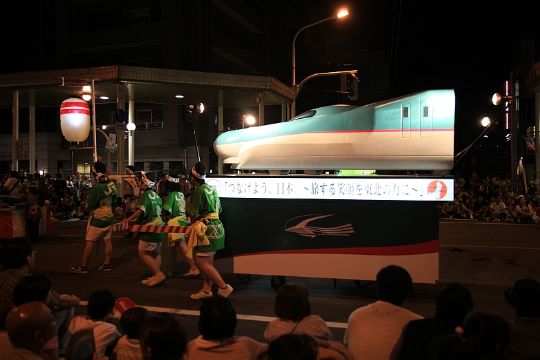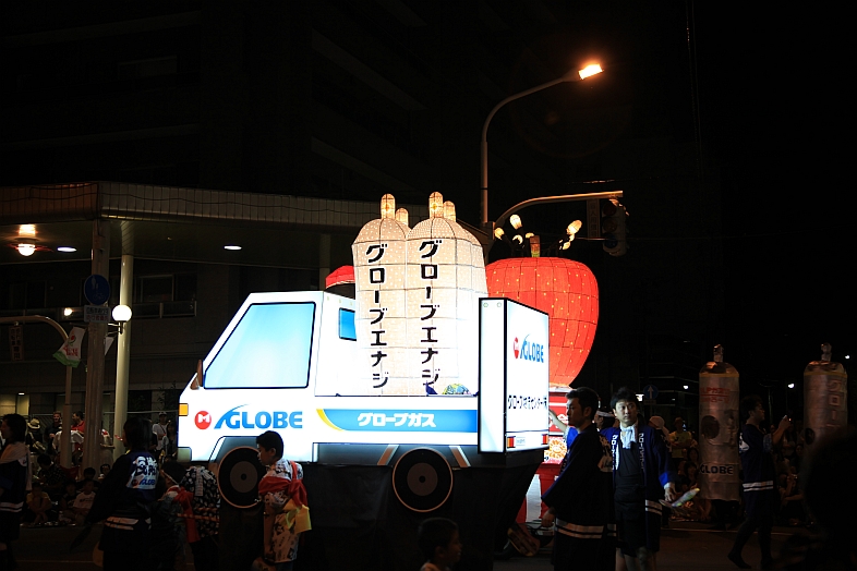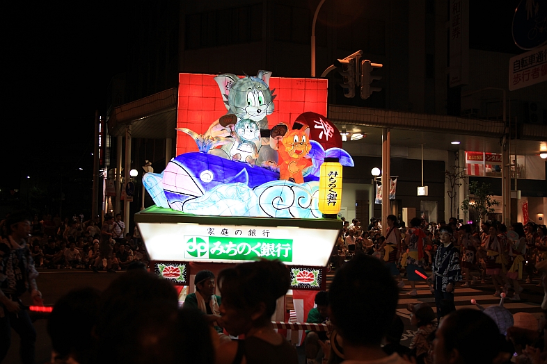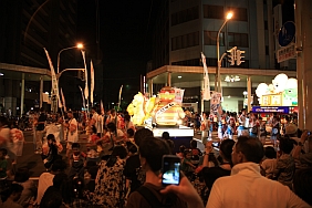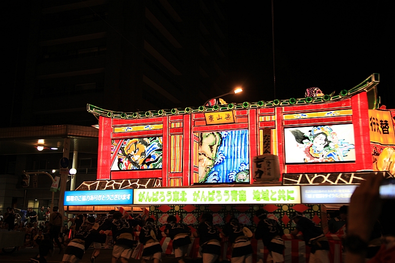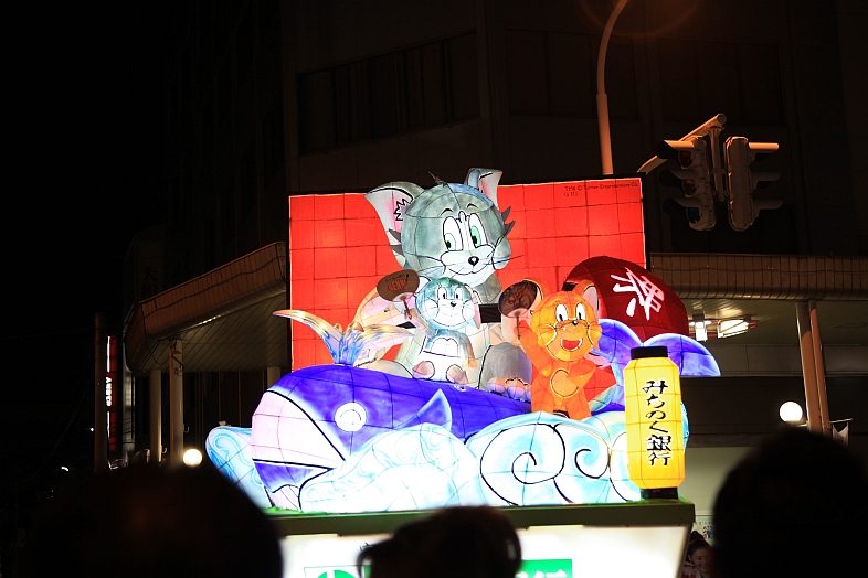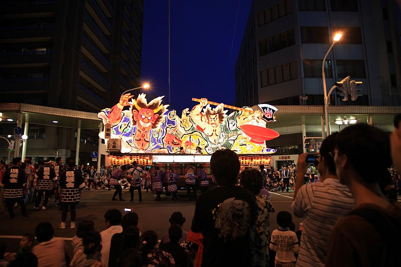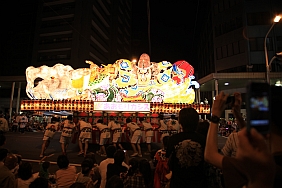 | Nebuta | Haneto, with Macross F's Ranka Lee and Sheryl Nome (blurry due to low light condition) walking pass | Nebuta |