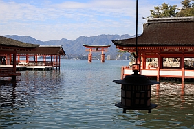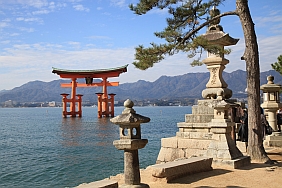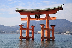 The island is famous for its Shinto Shrine Itsukushima Jinja, the shrine's wooden stage, and the shrine's red Torii standing in the middle of the sea.