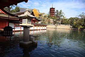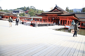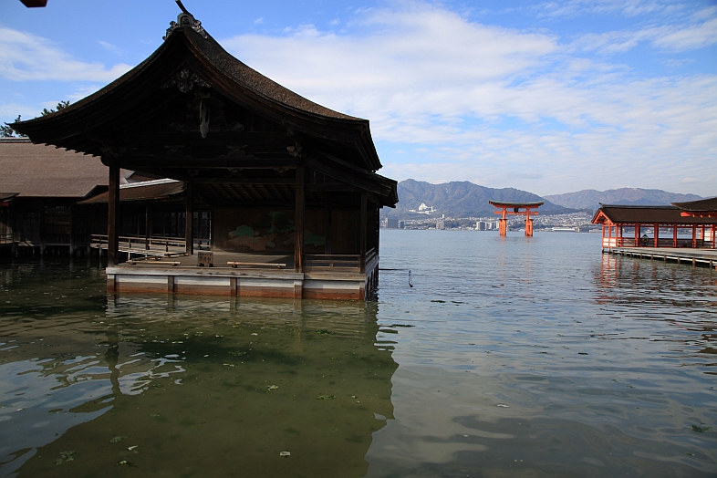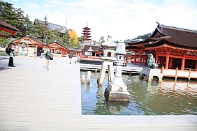 | Itsukushima Jinja. The left structure is the famous wooden Noh stage.