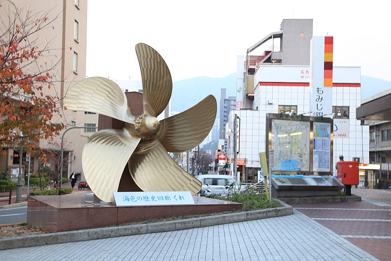 | [TV08] Scene showing the outside of the station with the big ship propeller statue