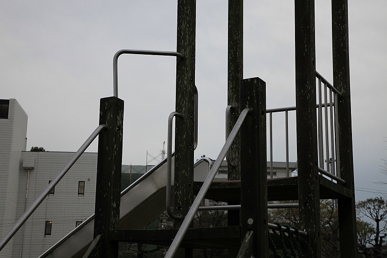 | [TV01] Chihiro & Fuu sitting on the recreational facilities in the park in front of the library