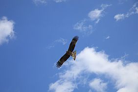 Kamogawa (Duck River) is a river running north-south inside Kyoto-shi. There are lots of eagles flying around the river delta.