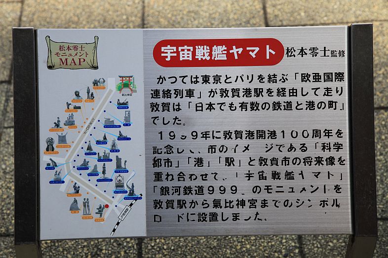 Fukui-ken Tsuruga-shi built multiple monuments of Galaxy Express 999 / Uchu Senkan Yamato near the main train station to commemorate the 100 anniversary of the Tsuruga Port in 1999.