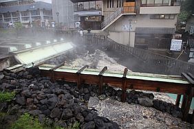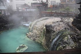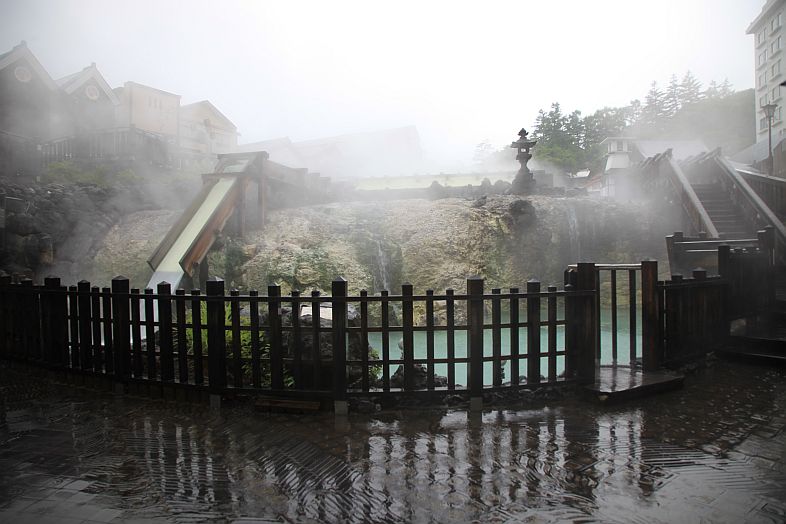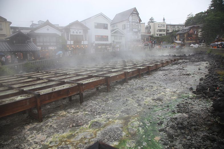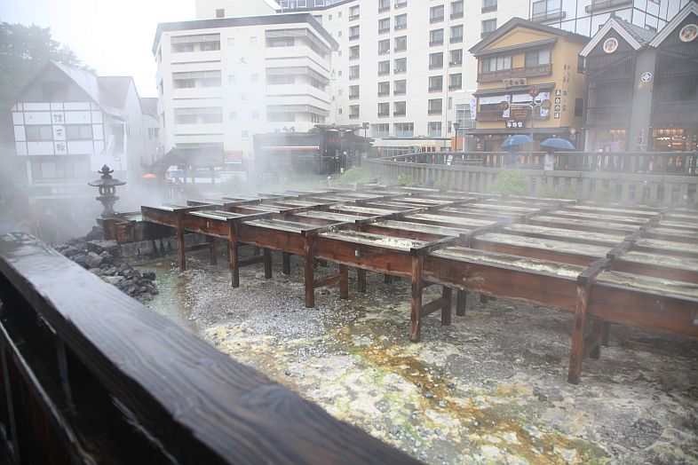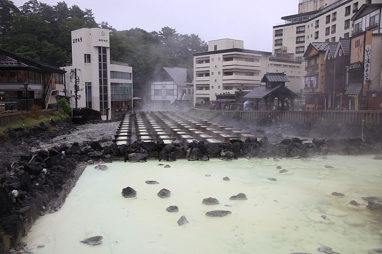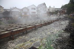 Kusatsu Onsen is a famous onsen area. The main attraction is the Yubatake in the middle of the town, which is being used to harvest and distribute the hot spring water (as hot as 94.5C) to all the ryokan/hotel in the area.
