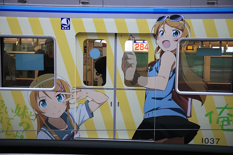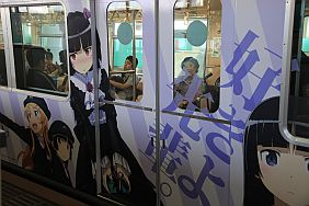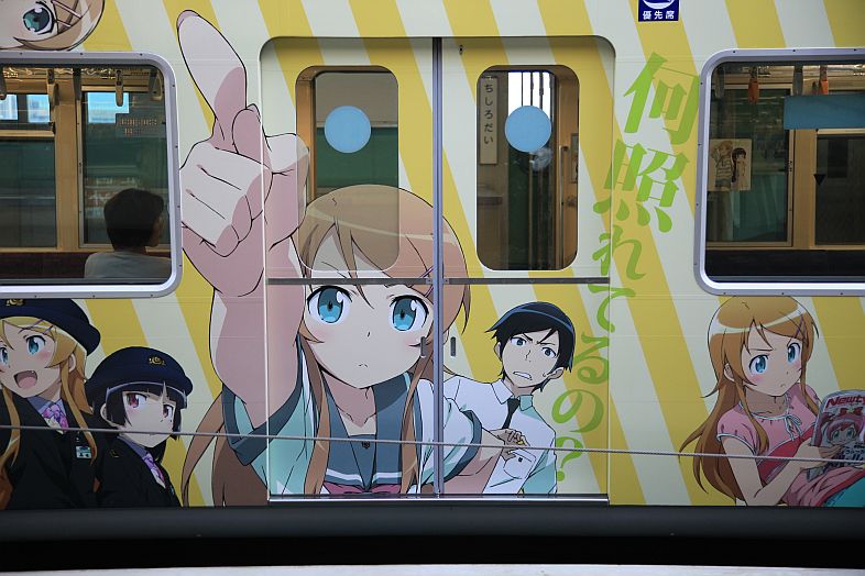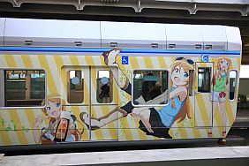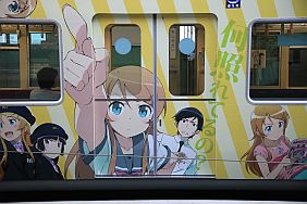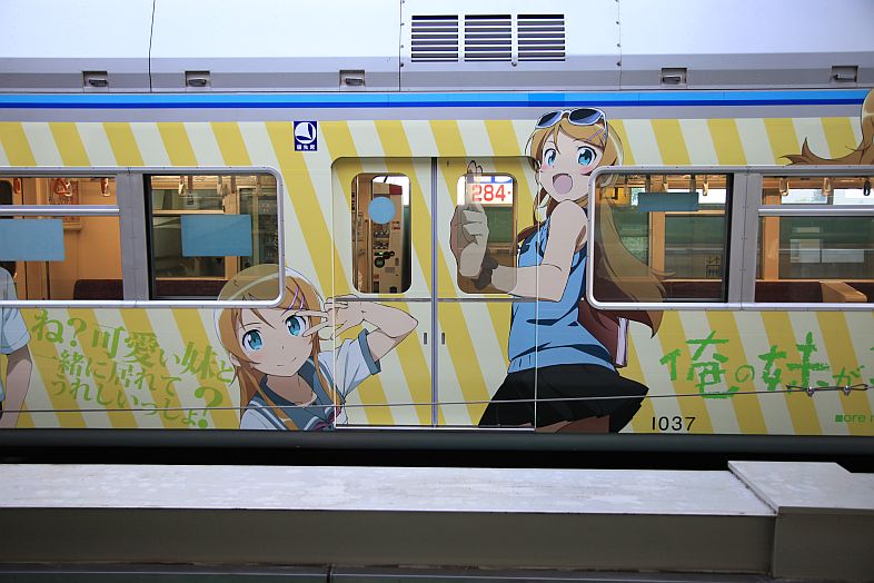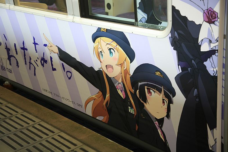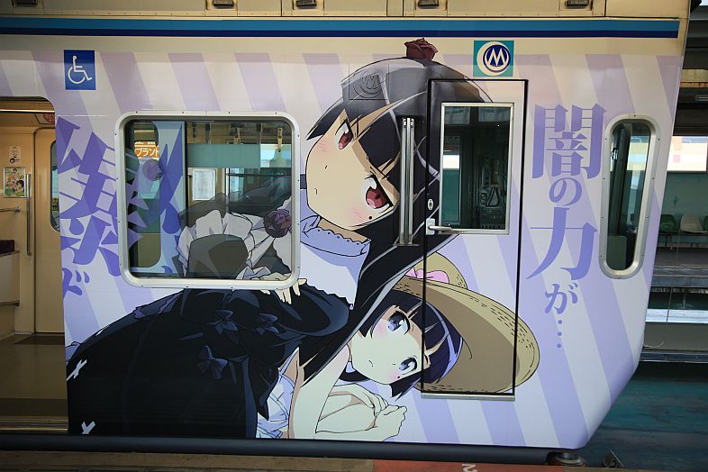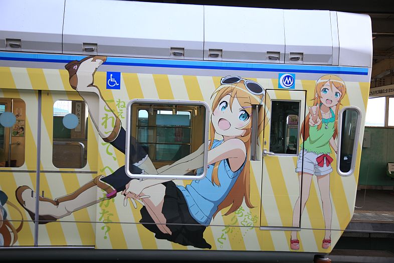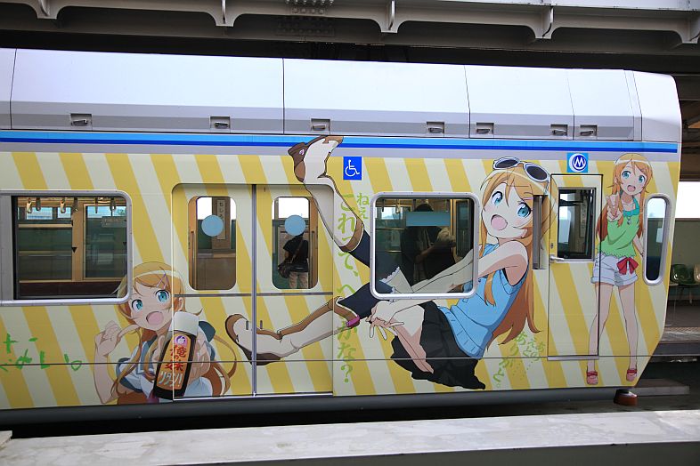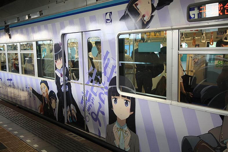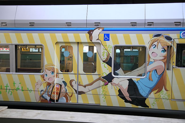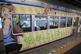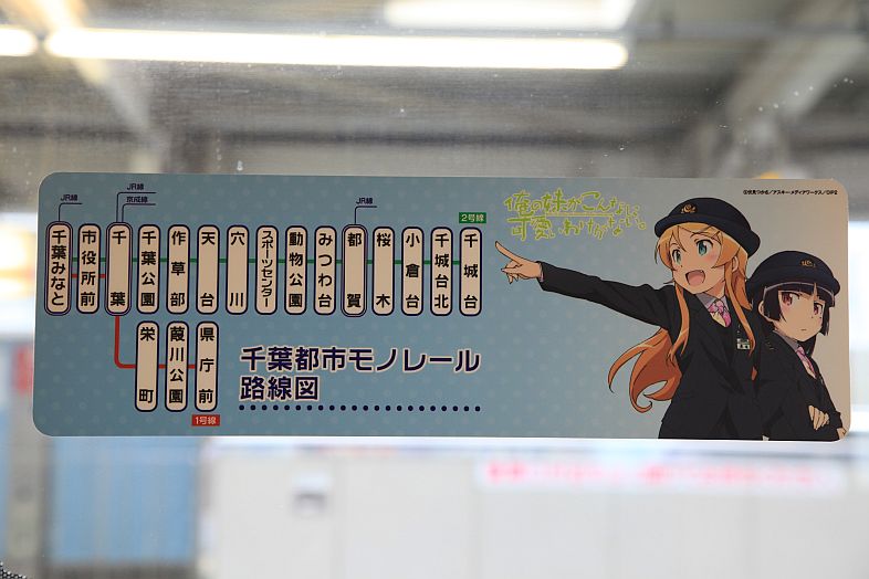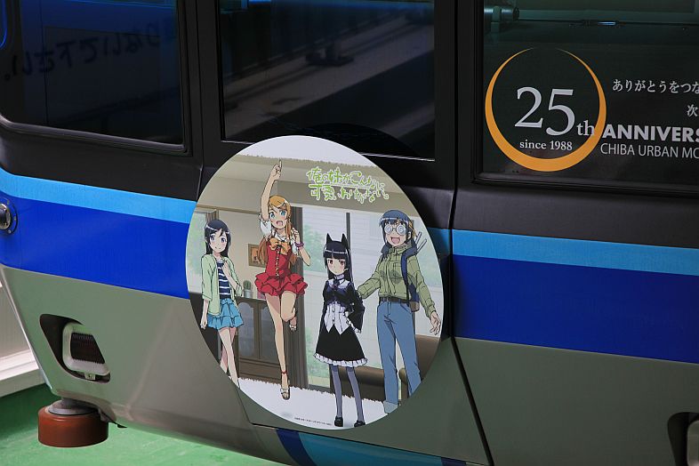 The Oreimo wrapping monorail runs in Chiba Urban Monorail lines 1 & 2. There are 2 sides of the monorail cars : Kiririn side and Kuroneko side.