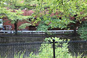 | [ED] Kuroko standing beside a river, with Makoto and Kuroko standing beside a red building in the background