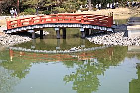 | Bridge inside Byodoin. The bird in the photo is a statue