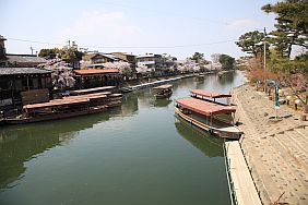 | Observation boats for hire for dining while enjoying the Sakura Blossom