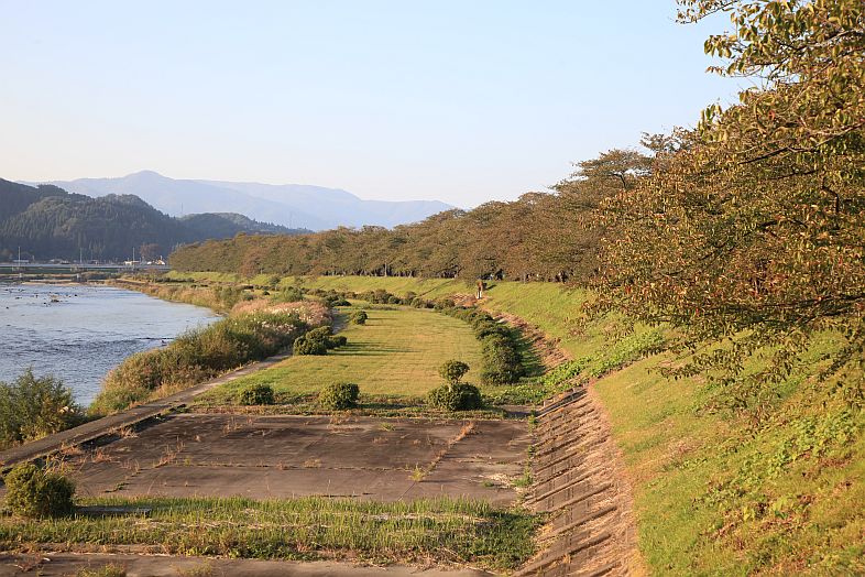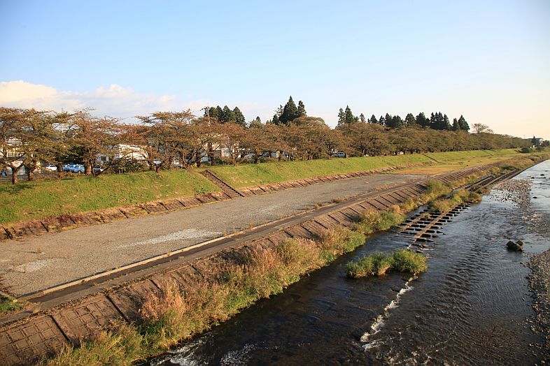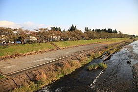 | The embankment by the Hinokinai River 桧木内川, which mostly consists of Sakura trees