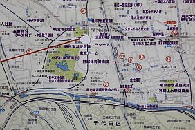 | Map in the nearby train station showing Rekisen Kouen 礫川公園 and Motomachi Kouen 元町公園
