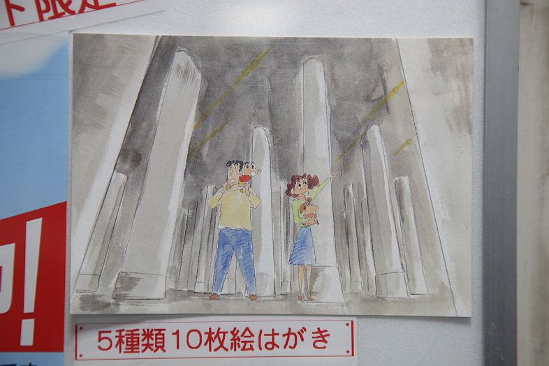 | Shin-chan's family of the anime Crayon Shin-chan クレヨンしんちゃん are citizens of Kasukabe-shi 春日部市, so the city uses the characters to promote the facilities